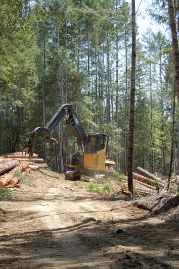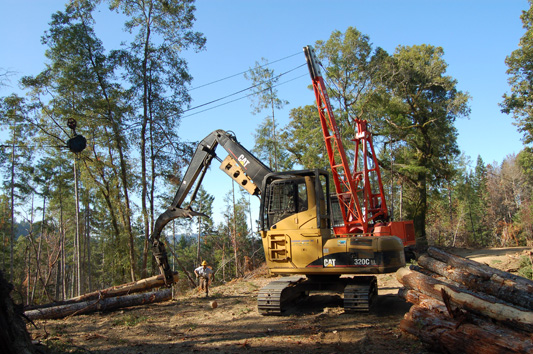 Yarder side working a near by job, Elwin Stillwell running the Cat 320 and Alvaro Sanchez running the Madill 120
